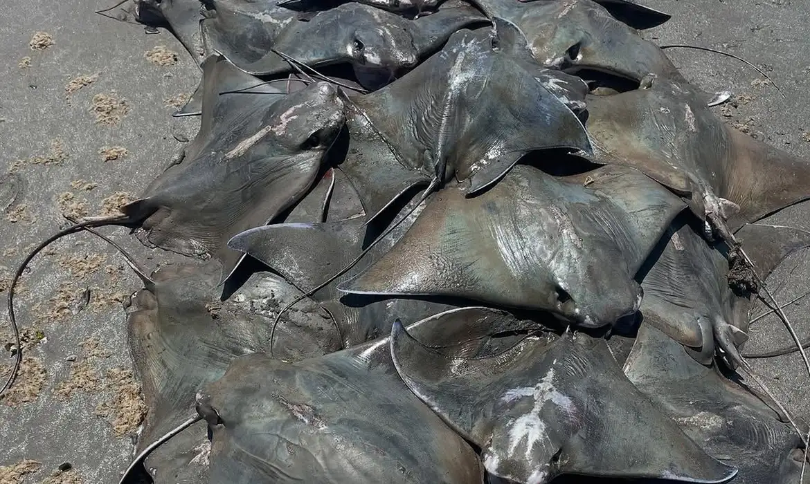 Cerca de 250 raias da espécie Ticonha foram encontradas mortas nesta terça-feira (25) nas praias do…