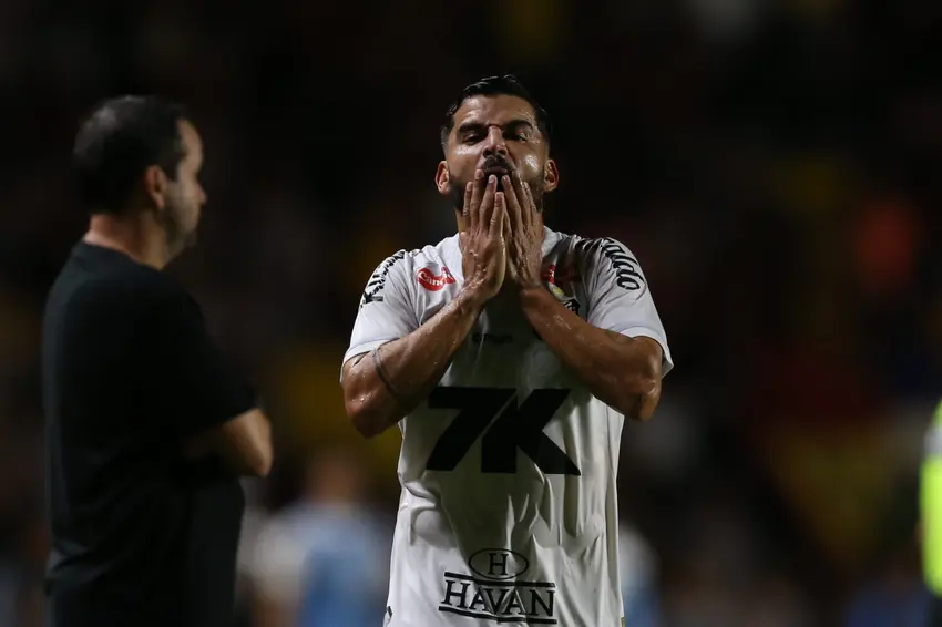 “Confirmo a falta anterior cometida contra o jogador do Santos e, após revisão, aplico o cartão vermelho ao número 8, Tomás Rincón, por conduta violenta. Trata-se de um lance de jogo brusco grave”, declarou o árbitro ao finalizar a análise com o VAR.